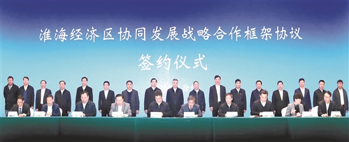徐州日?qǐng)?bào)訊(全媒體記者 李曉航 魏寧)在12月9日召開(kāi)的淮海經(jīng)濟(jì)區(qū)協(xié)同發(fā)展座談會(huì)上,徐州、淮北、菏澤、濟(jì)寧、臨沂、連云港、商丘、宿遷、宿州、棗莊10個(gè)淮海經(jīng)濟(jì)區(qū)城市共同簽署《淮海經(jīng)濟(jì)區(qū)協(xié)同發(fā)展戰(zhàn)略合作框架協(xié)議》,吹響了淮海經(jīng)濟(jì)區(qū)各市開(kāi)展新一輪戰(zhàn)略合作、加快協(xié)同發(fā)展步伐的“號(hào)角”!秴f(xié)議內(nèi)容》主要包括:著力構(gòu)建區(qū)域協(xié)同發(fā)展新機(jī)制、加快區(qū)域內(nèi)交通同城化建設(shè)、推動(dòng)區(qū)域產(chǎn)業(yè)協(xié)同發(fā)展、加強(qiáng)區(qū)域生態(tài)環(huán)境保護(hù)聯(lián)防聯(lián)控、加快推進(jìn)區(qū)域社會(huì)事業(yè)融合發(fā)展等五個(gè)方面內(nèi)容,下含16項(xiàng)具體工作舉措。 著力構(gòu)建區(qū)域協(xié)同發(fā)展新機(jī)制包括:1.建立區(qū)域戰(zhàn)略決策機(jī)制。建立淮海經(jīng)濟(jì)區(qū)協(xié)同發(fā)展座談會(huì)制度,作為淮海經(jīng)濟(jì)區(qū)城市推進(jìn)協(xié)同發(fā)展的決策機(jī)構(gòu);成立淮海經(jīng)濟(jì)區(qū)協(xié)同發(fā)展辦公室,各城市各派駐1-2名專職人員到協(xié)同發(fā)展辦公室工作。2.建立區(qū)域溝通協(xié)調(diào)機(jī)制。建立淮海經(jīng)濟(jì)區(qū)協(xié)同發(fā)展協(xié)商會(huì)議制度,協(xié)調(diào)推進(jìn)淮海經(jīng)濟(jì)區(qū)協(xié)同發(fā)展座談會(huì)研究確定的重大事項(xiàng);建立專題工作協(xié)調(diào)機(jī)制,協(xié)商解決區(qū)域重點(diǎn)領(lǐng)域、重大項(xiàng)目建設(shè)中遇到的難點(diǎn)問(wèn)題。3.建立區(qū)域合作運(yùn)行機(jī)制。建立重點(diǎn)專題領(lǐng)域合作機(jī)制,深化區(qū)域合作研究;協(xié)商組建淮海經(jīng)濟(jì)區(qū)立法協(xié)作聯(lián)席會(huì)議,探索建立區(qū)域內(nèi)各城市立法協(xié)作機(jī)制。構(gòu)建專家咨詢參謀機(jī)制,為促進(jìn)區(qū)域協(xié)同發(fā)展提供智力支持。 加快區(qū)域內(nèi)交通同城化建設(shè)包括:1.同步實(shí)施在建基礎(chǔ)設(shè)施項(xiàng)目。同步實(shí)施、同標(biāo)準(zhǔn)建設(shè)區(qū)域內(nèi)城市間斷頭路和等級(jí)標(biāo)準(zhǔn)不一致道路,逐步取消區(qū)域內(nèi)國(guó)省道公路收費(fèi)站。加快推進(jìn)淮蕭徐快速通道和徐淮阜高速至合徐高速聯(lián)通,魯南、徐連、商合杭、徐宿淮鹽等高速鐵路,皖北(淮宿蚌)城際鐵路,京杭運(yùn)河湖西航道改造等工程項(xiàng)目。探索構(gòu)建淮海經(jīng)濟(jì)區(qū)城際公交體系,加快開(kāi)通區(qū)域公交一卡通。2.協(xié)同推進(jìn)規(guī)劃項(xiàng)目申報(bào)審批工作。合力推動(dòng)區(qū)域內(nèi)重大交通規(guī)劃項(xiàng)目的實(shí)施和建設(shè)問(wèn)題。編制建設(shè)項(xiàng)目庫(kù),開(kāi)展一系列重點(diǎn)項(xiàng)目前期規(guī)劃申報(bào)審批工作。3.加強(qiáng)長(zhǎng)期規(guī)劃和項(xiàng)目?jī)?chǔ)備。立足于淮海經(jīng)濟(jì)區(qū)整體發(fā)展,做好高速鐵路、城際鐵路等項(xiàng)目?jī)?chǔ)備。 推動(dòng)區(qū)域產(chǎn)業(yè)協(xié)同發(fā)展包括:1.推動(dòng)產(chǎn)業(yè)鏈深度融合。大力推動(dòng)跨區(qū)域產(chǎn)業(yè)鏈分工合作,培育壯大優(yōu)勢(shì)特色產(chǎn)業(yè)集群,提升產(chǎn)業(yè)整體競(jìng)爭(zhēng)實(shí)力。充分挖掘區(qū)域科教資源優(yōu)勢(shì),建設(shè)具有全國(guó)影響力的區(qū)域創(chuàng)新高地。2.推進(jìn)平臺(tái)載體共建共享。多形式創(chuàng)新共建合作園區(qū),探索跨市“飛地園區(qū)”建設(shè)。建立投融資服務(wù)平臺(tái),形成區(qū)域統(tǒng)一、高效、規(guī)范的公共服務(wù)平臺(tái)體系。3.共建雙向開(kāi)放新格局。規(guī)劃布局一批物流貿(mào)易基地和陸路開(kāi)放口岸,推動(dòng)鐵路、內(nèi)河、航空、海運(yùn)等開(kāi)放口岸共建共享。依托區(qū)域內(nèi)各交通樞紐,大力發(fā)展樞紐經(jīng)濟(jì)。提升區(qū)域貿(mào)易自由度水平,發(fā)揮各地開(kāi)放平臺(tái)作用,集聚更多優(yōu)質(zhì)產(chǎn)業(yè)項(xiàng)目。 加強(qiáng)區(qū)域生態(tài)環(huán)境保護(hù)聯(lián)防聯(lián)控包括:1.推進(jìn)生態(tài)系統(tǒng)協(xié)同保護(hù)。深入推進(jìn)江淮生態(tài)大走廊和沂沭泗河生態(tài)走廊建設(shè),加大區(qū)域城市濕地、灘涂、湖庫(kù)等生態(tài)資源保護(hù)力度,交流共享資源枯竭地區(qū)采煤沉陷區(qū)治理經(jīng)驗(yàn)和生態(tài)修復(fù)經(jīng)驗(yàn)。2.合力解決環(huán)境突出問(wèn)題。強(qiáng)化區(qū)域大氣污染聯(lián)防聯(lián)控,強(qiáng)化城市水污染防治協(xié)作,嚴(yán)控土壤環(huán)境風(fēng)險(xiǎn)。3.加快完善環(huán)保合作機(jī)制。合作共建跨區(qū)域環(huán)境保護(hù)機(jī)制,加強(qiáng)日常環(huán)保合作,努力實(shí)現(xiàn)區(qū)域內(nèi)生態(tài)保護(hù)和資源開(kāi)發(fā)利益平衡。 加快推進(jìn)區(qū)域社會(huì)事業(yè)融合發(fā)展包括:1.加強(qiáng)區(qū)域教育合作交流。推動(dòng)高校建立區(qū)域產(chǎn)學(xué)研聯(lián)動(dòng)機(jī)制,組建淮海經(jīng)濟(jì)區(qū)高校發(fā)展
