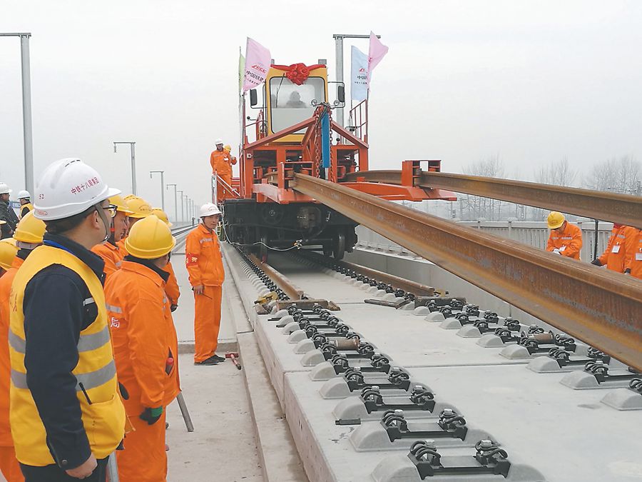 2月26日,華東地區(qū)第二條快速客運(yùn)通道——商(丘)合(肥)杭(州)高鐵在亳州市古城東站正式開始鋪軌。張柏青攝
