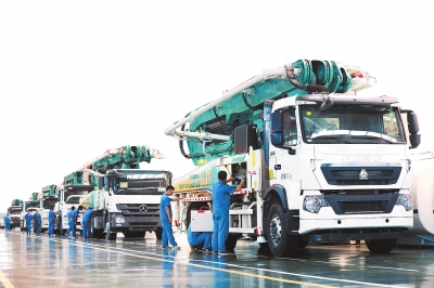 下圖:河南森源重工有限公司專用車生產(chǎn)線上即將下線的工程、環(huán)衛(wèi)等特種車產(chǎn)品。本報資料圖片