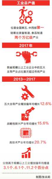 隨著一項項支持政策出臺、一個個重大項目投產(chǎn),河南工業(yè)增速始終保持在全國工業(yè)大省第一方陣,新舊動能加快轉(zhuǎn)換,創(chuàng)新能力穩(wěn)步提高。2013年至2017年,五大主導(dǎo)產(chǎn)業(yè)增加值年均增長12.6%,國家級創(chuàng)新平臺突破150家。2018年,在嚴(yán)峻的經(jīng)濟下行壓力下,河南規(guī)模以上工業(yè)增加值仍取得7.2%的增長,利潤總額增長了24.5%。