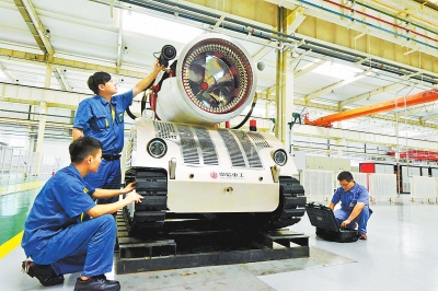 上圖:中信重工伊濱高端制造產(chǎn)業(yè)園技術(shù)人員在調(diào)試新研發(fā)的特種消防機器人。本報資料圖片