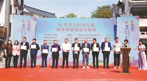啟動儀式上,云龍區(qū)委副書記、區(qū)長周天文致辭,共青團(tuán)徐州市委副書記楊輝應(yīng)邀為“云龍區(qū)青年創(chuàng)業(yè)聯(lián)盟”揭牌,云龍區(qū)委副書記陳婕、區(qū)人大常委會副主任王艷、區(qū)政協(xié)副主席孫雅琴分別為10位“云龍區(qū)2018年度青年創(chuàng)新創(chuàng)業(yè)先鋒獎”獲獎青年企業(yè)家頒發(fā)獎杯證書。云龍區(qū)人社局、區(qū)科技局、區(qū)地方金融管理局、區(qū)市場發(fā)展服務(wù)中心、區(qū)人才辦等相關(guān)部門主要負(fù)責(zé)同志和來自全區(qū)各領(lǐng)域共120名創(chuàng)新創(chuàng)業(yè)青年參加。
