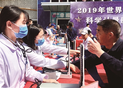 免費(fèi)測量血壓,講解血壓計使用常識。徐州日報全媒體記者 季芳 攝