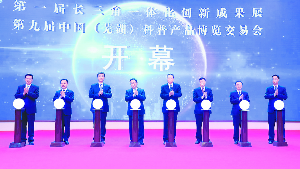 李國英應(yīng)勇吳政隆袁家軍懷進(jìn)鵬致辭  5月23日上午,第一屆長三角一體化創(chuàng)新成果展、第九屆中國科普產(chǎn)品博覽交易會(huì)在安徽蕪湖隆重開幕。中共中央政" />