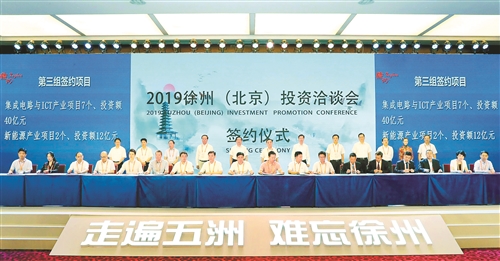 2019徐州(北京)投資洽談會上一批項(xiàng)目成功簽約。 本報(bào)全媒體記者 徐劍 齊浩 攝