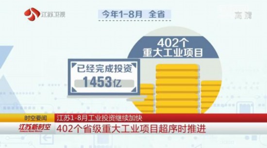 進(jìn)入下半年江蘇工業(yè)投資增幅繼續(xù)加快,截至8月底,全省今年重點(diǎn)實(shí)施的402項(xiàng)重大工業(yè)項(xiàng)目高于序時(shí)進(jìn)度,為全年工業(yè)質(zhì)優(yōu)高效發(fā)展提供了增長(zhǎng)源。