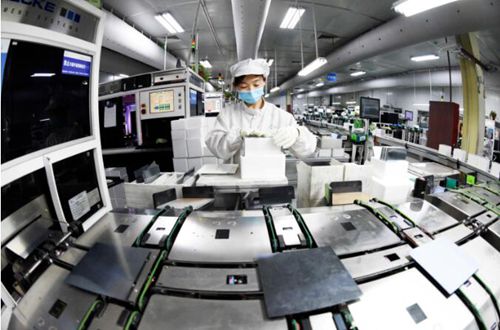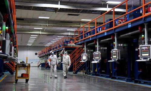 △江蘇協(xié)鑫硅材料科技發(fā)展有限公司,工人在生產(chǎn)線上緊張忙碌。