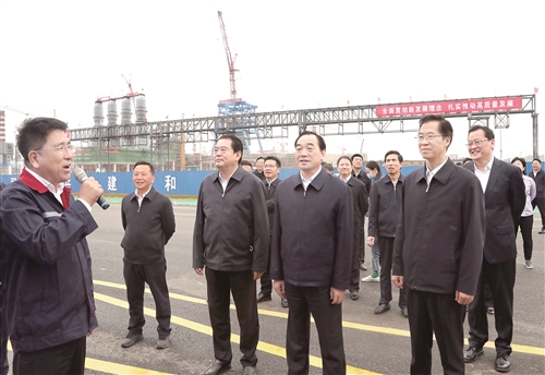 周鐵根、莊兆林、王安順、徐大勇等觀摩徐鋼三期重大技改項目。 徐報融媒記者 齊浩 孫井賢 攝