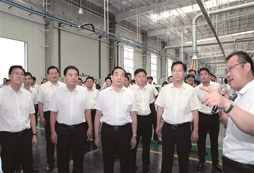 周鐵根、莊兆林、王安順等在邳州市觀摩TATA木門智能制造項(xiàng)目。徐報融媒記者 齊浩 攝