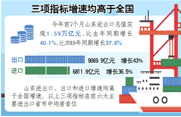 原標題:前7個月山東進出口同比增長40.1%