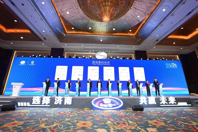 本次峰會期間,濟(jì)南市共有19個項目簽約。其中,在省主會場共簽約7個項目,項目總投資額約9.71億美元,合同外資2.78億美元,涉及新材料、新能源、新一代信息技術(shù)等領(lǐng)域。在濟(jì)南城市推介活動現(xiàn)場,共簽約12個項目,總投資額約8.54億美元,合同外資3.85億美元,涉及高端裝備制造、現(xiàn)代農(nóng)業(yè)、新能源、類金融等領(lǐng)域,其中制造業(yè)類項目7個。