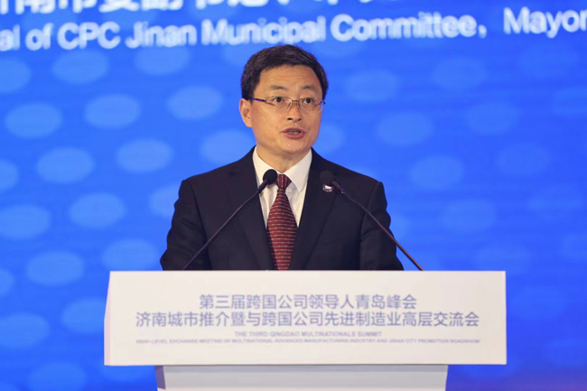 人民網(wǎng)青島6月20日電 6月20日上午,第三屆跨國公司領(lǐng)導(dǎo)人青島峰會舉辦期間,濟(jì)南市舉辦城市推介暨與跨國公司先進(jìn)制造業(yè)高層交流會。近100家世界500強、跨國公司、知名企業(yè)、商協(xié)會機構(gòu)及駐濟(jì)重點企業(yè)的150余名嘉賓齊聚一堂,共商合作,共謀發(fā)展。山東省委常委、市委書記劉強出席,市委副書記、市長于海田出席并致辭。