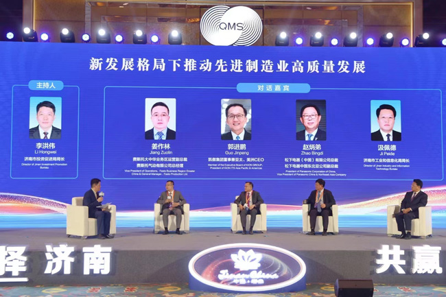在對話交流階段,費斯托大中華業(yè)務(wù)區(qū)運營副總裁姜作林,凱傲集團(tuán)董事兼亞太、美洲CEO郭進(jìn)鵬,松下電器中國東北亞公司副總裁趙炳弟,濟(jì)南市工業(yè)和信息化局局長汲佩德、濟(jì)南市投資促進(jìn)局局長李洪偉等,圍繞“新發(fā)展格局下推動先進(jìn)制造業(yè)高質(zhì)量發(fā)展”展開了對話交流。