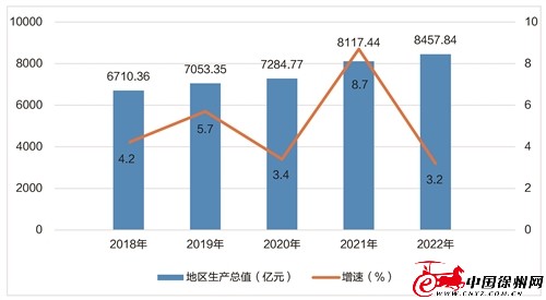 一、綜 合 2022年,面對復(fù)雜嚴(yán)峻的國內(nèi)外發(fā)展形勢和多重超預(yù)期風(fēng)險挑戰(zhàn),特別是受到疫情的嚴(yán)重沖擊,全市上下在市委、市政府的堅強(qiáng)領(lǐng)導(dǎo)下,堅持以習(xí)近平新時代中國特色社會主義思想為指導(dǎo),深入貫徹落實黨中央、國務(wù)院和省委、省政府決策部署,堅持穩(wěn)中求進(jìn)工作總基調(diào),高效統(tǒng)籌疫情防控和經(jīng)濟(jì)社會發(fā)展工作,統(tǒng)籌發(fā)展和安全,以超常規(guī)力度和舉措應(yīng)對疫情沖擊、經(jīng)濟(jì)下行等不利影響,加快穩(wěn)經(jīng)濟(jì)一攬子政策和接續(xù)措施落地實施,著力推動高質(zhì)量發(fā)展。全市經(jīng)濟(jì)運行穩(wěn)定恢復(fù),綜合實力穩(wěn)步提升,物價水平溫和上漲,就業(yè)形勢總體平穩(wěn),民生福祉持續(xù)改善,交出了徐州“敢為善為、務(wù)實落實”的過硬答卷。 綜合實力穩(wěn)步提升。初步核算,2022年,全市實現(xiàn)地區(qū)生產(chǎn)總值(GDP)8457.84億元,按可比價計算,比上年增長3.2%。其中,第一產(chǎn)業(yè)增加值771.89億元,增長3.0%;第二產(chǎn)業(yè)增加值3593.22億元,增長4.0%;第三產(chǎn)業(yè)增加值4092.73億元,增長2.5%。三次產(chǎn)業(yè)結(jié)構(gòu)為9.1∶42.5∶48.4。全市人均地區(qū)生產(chǎn)總值93731元,增長3.6%。 新興產(chǎn)業(yè)增勢良好。全市“343”創(chuàng)新產(chǎn)業(yè)集群產(chǎn)值(營業(yè)收入)比上年增長8.4%,其中規(guī)上工業(yè)產(chǎn)值增長8.3%,規(guī)上服務(wù)業(yè)營業(yè)收入增長11.8%。分產(chǎn)業(yè)看,綠色低碳能源和新材料產(chǎn)值(營業(yè)收入)分別增長52.5%和8.9%,集成電路與ICT、醫(yī)藥健康、安全應(yīng)急分別增長29.2%、0.9%和19.0%,精品鋼材、高端紡織和食品及農(nóng)副產(chǎn)品加工分別增長17.1%、8.9%和4.1%,數(shù)字經(jīng)濟(jì)核心產(chǎn)業(yè)營業(yè)收入1199.5億元,增長45.7%。 市場主體不斷增多。年末全市共登記市場主體130.05萬戶,其中企業(yè)28.52萬戶、個體經(jīng)營戶101.53萬戶。全年工商新登記企業(yè)5.24萬戶,注冊資金3089億元;其中新增私營企業(yè)4.61萬戶,注冊資金2242億元;新增外資企業(yè)196戶,注冊資金142.64億元。新增個體戶10.98萬戶,注冊資金158億元。 就業(yè)形勢基本平穩(wěn)。全年城鎮(zhèn)新增就業(yè)8.25萬人;城鎮(zhèn)失業(yè)人員就業(yè)6.83萬人,城鄉(xiāng)就業(yè)困難人員就業(yè)2.08萬人。支持成功自主創(chuàng)業(yè)4.90萬人,引領(lǐng)大學(xué)生創(chuàng)業(yè)3220人,扶持農(nóng)民自主創(chuàng)業(yè)3.00萬人。全年城鄉(xiāng)勞動者就業(yè)技能培訓(xùn)5.01萬人,新生代農(nóng)民工技能培訓(xùn)1.61萬人。新增數(shù)字技能人才1.20萬人。 居民消費價格溫和上漲。全年城市居民消費價格比上年上漲2.2%。分類別看,全年八大類商品價格均有小幅上漲,食品煙酒、衣著、居住、生活用品及服務(wù)、交通與通信、教育文化娛樂、醫(yī)療保健、其他用品和服務(wù)類價格分別上漲2.0%、1.5%、0.5%、1.2%、5.5%、3.6%、2.2%和1.2%。 工業(yè)品價格漲幅回落。全年工業(yè)生產(chǎn)者出廠價格比上年上漲5.6%,漲幅較上年回落4.2個百分點,其中生產(chǎn)資料出廠價格上漲6.2%,生活資料出廠價格上漲2.4%。全年工業(yè)生產(chǎn)者購進(jìn)價格比上年上漲9.4%,漲幅較上年回落27.5個百分點,其中燃料動力類購進(jìn)價格上漲19.2%,農(nóng)副產(chǎn)品類購進(jìn)價格上漲12.6%。 二、農(nóng)林牧漁業(yè) 農(nóng)業(yè)生產(chǎn)總體穩(wěn)定。全年實現(xiàn)農(nóng)林牧漁業(yè)(含農(nóng)林牧漁服務(wù)業(yè))總產(chǎn)值1361.24億元,按可比價計算,比上年增長4.3%。全年糧食播種面積769.28千公頃、增長0.2%,糧食總產(chǎn)量502.40萬噸、增長0.1%,實現(xiàn)單產(chǎn)6530.78公斤每公頃;其中夏糧213.17萬噸、增長0.4%,秋糧289.22萬噸、下降0.1%。全年棉花種植面積3.1千公頃、下降20.7%,產(chǎn)量0.47萬噸、下降20.5%;油料種植面積25.03千公頃、下降4.2%,產(chǎn)量11.36萬噸、下降2.7%;蔬菜及食用菌種植面積355.02千公頃、增長2.1%,產(chǎn)量1399.14萬噸、增長4.4%;蠶繭產(chǎn)量0.36萬噸、下降12.2%;水果(含瓜果類)產(chǎn)量257.36萬噸、增長4.1%。全年豬肉產(chǎn)量33.47萬噸、與上年同期持平,牛肉產(chǎn)量0.98萬噸、下降1.1%,羊肉產(chǎn)量1.60萬噸、增長2.7%;禽肉、禽蛋產(chǎn)量分別為29.01萬噸和36.50萬噸,分別增長3.1%和1.9%;生牛奶產(chǎn)量14.45萬噸,下降5.7%;水產(chǎn)品(不含遠(yuǎn)洋捕撈)產(chǎn)量16.39萬噸,增長1.4%。 農(nóng)業(yè)現(xiàn)代化加快推進(jìn)。全年新建高標(biāo)準(zhǔn)農(nóng)田46.28千公頃,累計建成530.75千公頃、比上年增長9.5%。新增有效灌溉面積13.68千公頃,新增節(jié)水灌溉面積2.52千公頃。全年稻麥秸稈還田面積達(dá)508.63萬畝,秸稈綜合利用率達(dá)96.5%以上;累計建設(shè)秸稈收儲中心和臨時堆放點1300處,年收儲能力達(dá)120萬噸。全市國家級、省級、市級農(nóng)業(yè)龍頭企業(yè)分別達(dá)到9家、90家和243家,當(dāng)年新增國家級農(nóng)業(yè)龍頭企業(yè)1家。 三、工業(yè)和建筑業(yè) 工業(yè)生產(chǎn)穩(wěn)定增長。全年工業(yè)增加值2974.27億元,比上年增長4.6%。規(guī)模以上工業(yè)增加值增長5.9%,其中輕工業(yè)增長3.3%,重工業(yè)增長7.0%。分經(jīng)濟(