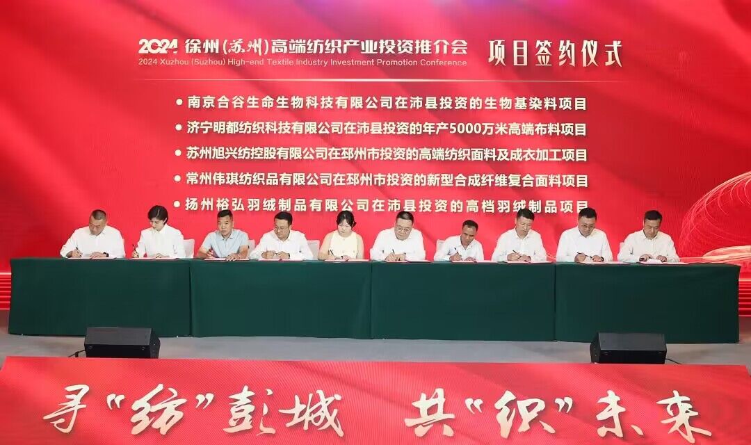 7月19日,2024徐州(蘇州)高端紡織產(chǎn)業(yè)投資推介會(huì)在蘇州舉行,F(xiàn)場(chǎng)簽約15個(gè)重點(diǎn)項(xiàng)目,總投資額108.8億元,涵蓋纖維材料、紡紗織造、紡織裝備等領(lǐng)域。