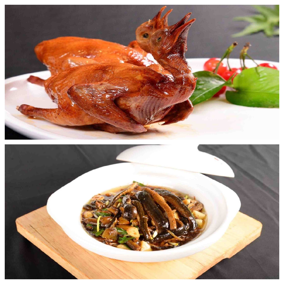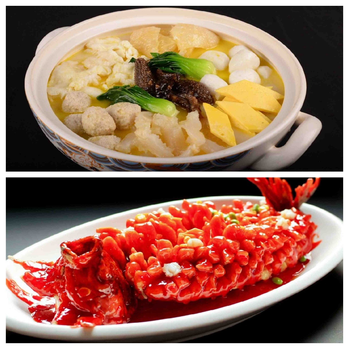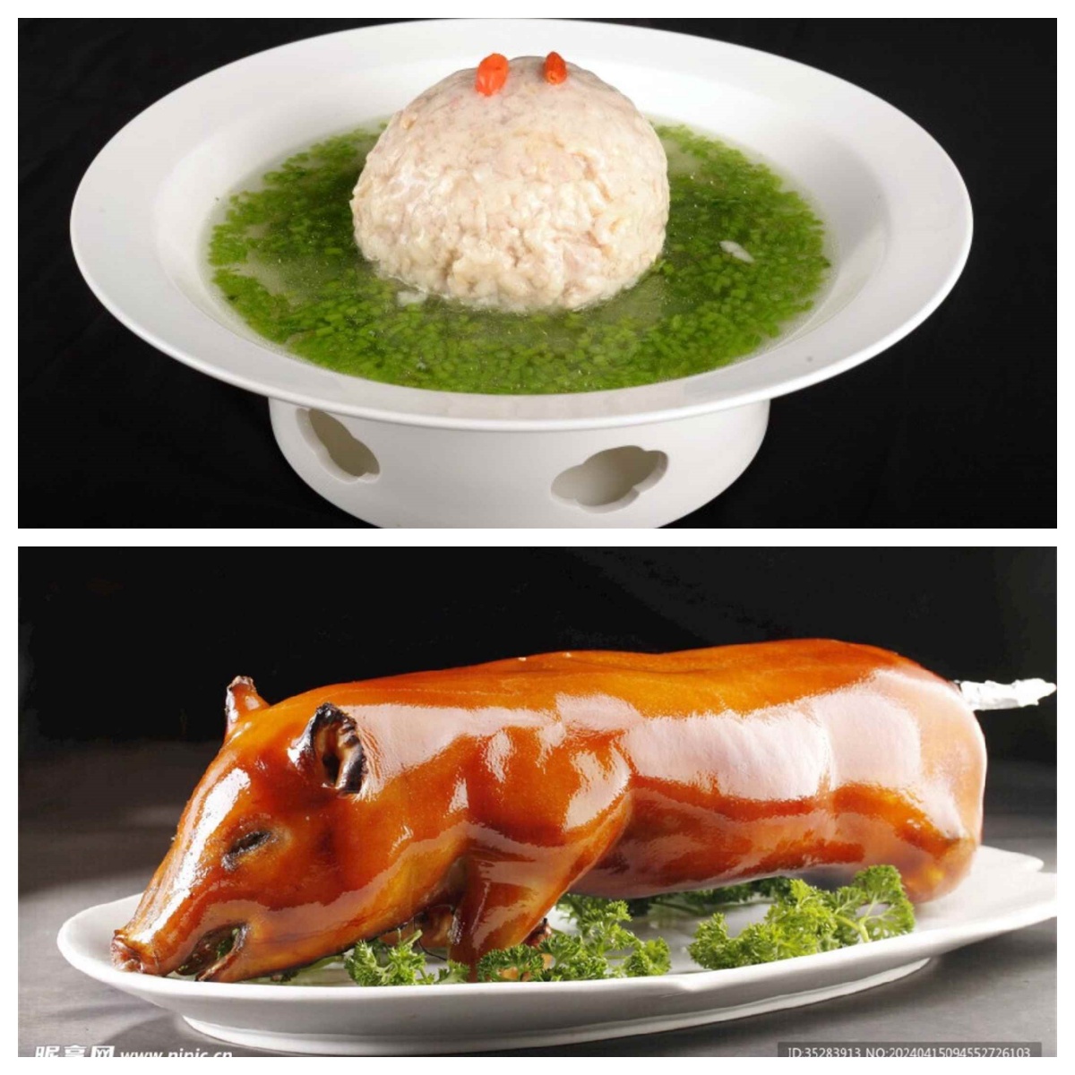 先后排序:獅子頭、烤乳豬、脆皮乳鴿、軟兜長(zhǎng)魚、全家福、松鼠魚、叉燒肉
