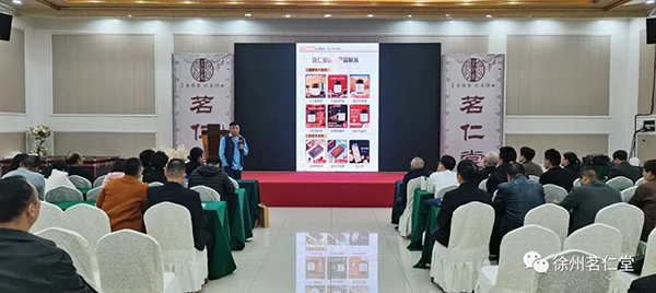 茗仁堂企業(yè)集團(tuán)研發(fā)負(fù)責(zé)人黃朝兵先生從原理、成分、臨床案例等方面,對(duì)茗仁堂本草膏方系列、代用茶系類、內(nèi)服系列、外用洗護(hù)系列等做生動(dòng)講解,引來陣陣掌聲。