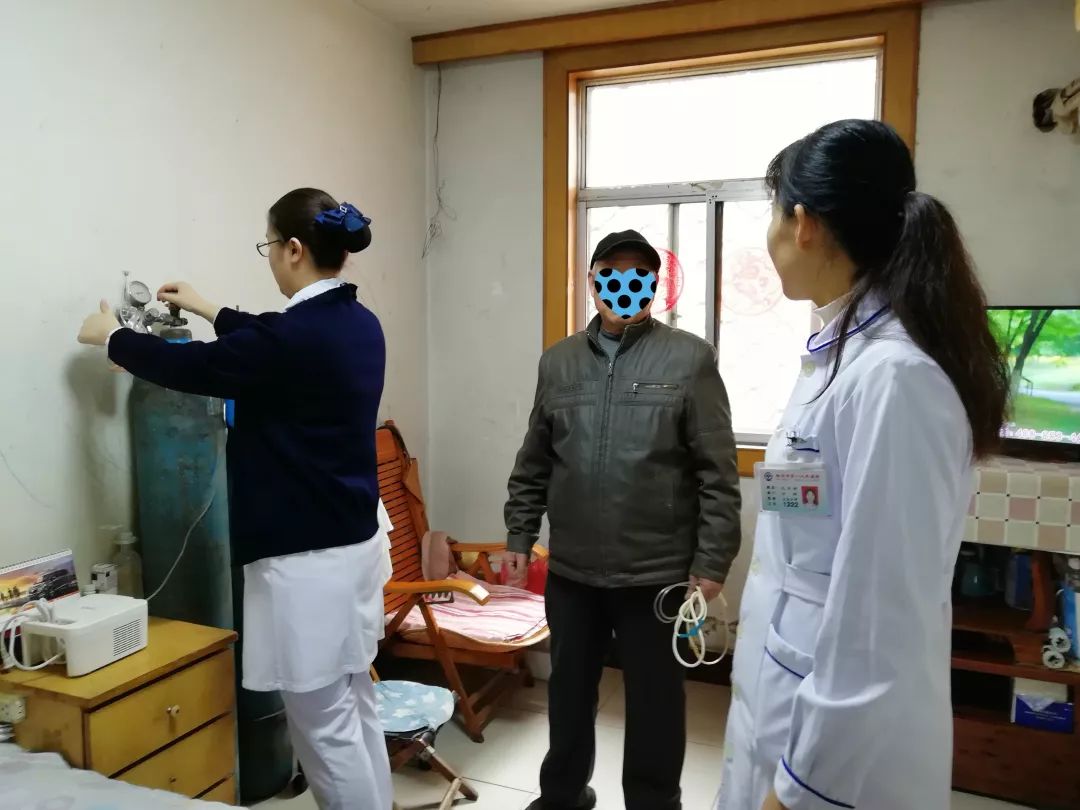 得知周辛燦和護(hù)士長(zhǎng)等人要來家訪的消息,邵老師和老伴早早在門口迎接。護(hù)士長(zhǎng)孔令娟和床位護(hù)士孔令利為邵老師測(cè)血糖5.3mmol/l,指脈氧95%,心率102次/分,血壓150/85mmhg。周醫(yī)師詢問了邵老師家庭氧療以及用藥、生活、休息等情況后,告知邵老師氧療時(shí)間不足會(huì)加重心臟負(fù)擔(dān),是導(dǎo)致心率快的主要誘因。堅(jiān)持持續(xù)低流量吸氧,能夠顯著改善肺功能,并予正確的家庭氧療指導(dǎo)。護(hù)士長(zhǎng)孔令娟仔細(xì)檢查了用氧裝置,并詢問氧氣裝置的消毒方式以及氧氣濕化液的選擇。邵老師的老伴說,在家里氧氣管始終沒有更換過,濕化液也沒有做到每日更換。細(xì)心的孔護(hù)士長(zhǎng)為邵老師帶來了新的氧氣管與霧化面罩,并指導(dǎo)氧氣裝置的安全維護(hù)與消毒的重要性,以防止交叉感染、病情復(fù)發(fā)而加重病情。邵老師和老伴對(duì)醫(yī)護(hù)人員的耐心細(xì)致指導(dǎo)表示感謝及配合。