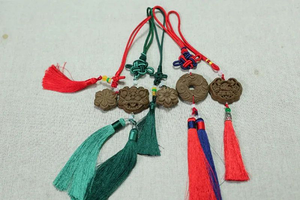 5. 將藥泥填入香牌模具壓實,用竹簽輕撬邊緣脫模,置于干燥通風處陰干后,穿繩裝飾即可。