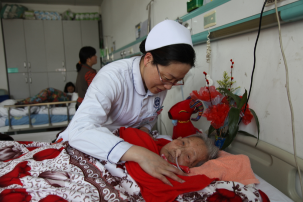 我母親在老年科住院的日子里,崔護(hù)士長每天帶著可愛的天使們來到母親身邊,親切的詢問病情,查看病人,時刻關(guān)心著母親的病情。外面雖然是寒冷的冬天,但我們這些做兒女的心里卻感覺暖暖的。母親住院期間被下過幾次病危通知書,搶救過好幾次,是他們一次次把我母親從死亡的邊緣拉回來。97歲的母親身體瘦弱,相信在老年科沒有比她的血管再難打的了,但每次輸液時她們都是耐心、仔細(xì),一針見血。記得有次夜里,母親病情突然又加重了,只見鄭娜很敏捷的一針打上了留置針,及時用藥,使母親轉(zhuǎn)危為安。母親鼻腔插著胃管,每天看到孫亞、趙雙、王麗娜等美女小護(hù)士們嫻熟地為母親喂飯,做口腔護(hù)理、會陰護(hù)理等,從不嫌臟怕累。她們是那樣的溫柔可親,善良而又賢惠。深夜在大家安靜入睡的時候,又是值夜班的護(hù)士們一次次的來到母親身邊,時刻觀察母親的病情,為她蓋好被子,輕輕的對她說:“楊奶奶,安心睡吧,請您放心,我們時刻守護(hù)著您。”多么簡短的一句話,讓我們家屬心里暖暖的,感覺這個冬天不再寒冷。謝謝你們,李榮、王菲、曹偉艷、趙金巧這些年輕又漂亮的護(hù)士們,你們就像我自己的孩子,親切又溫柔。