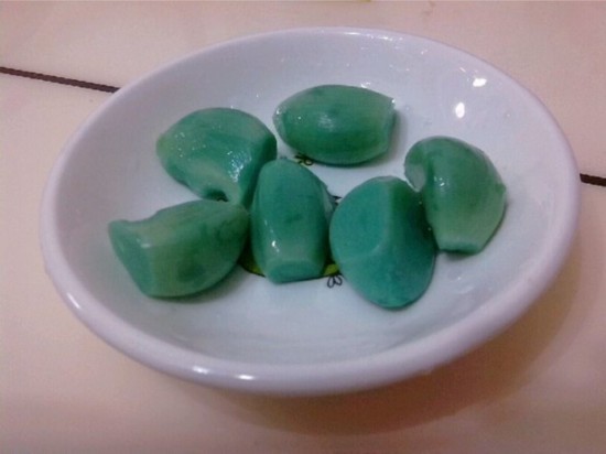 大蒜變綠須經過低溫大蒜要變綠,必須經過“低溫”。但為了不讓自己凍死,處于休眠狀態(tài)的大蒜會蘇醒過來,其中的蒜氨酸、蒜氨酸酶等發(fā)生反應,參與形成藍色素,由于其不穩(wěn)定,會轉變?yōu)辄S色素。而腌制20天時,剛好處于兩種色素共存的時候,兩種顏色疊加,就呈現出臘八蒜獨有的碧綠色,有一定的抗氧化作用,可以放心吃。
