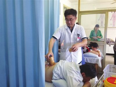 里約奧運(yùn)會上,中國的拔罐療法火了!老外都捧場,中國人自然也很青睞。在市中醫(yī)院,拔罐作為針灸療法的輔助手段。如今,每天都有100多人前來針灸、拔罐。圖為8月17日,市中醫(yī)院針灸科主任宋建喬正在為市民拔罐。顧熠 金星宇攝