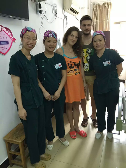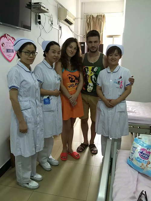 9 月8日,在市第一人民醫(yī)院病房,我們見到了來自白俄羅斯的瑪琳娜以及她剛出生3天的女兒,沈溪住院醫(yī)師則擔當我們的翻譯。我們發(fā)現(xiàn),與中國產(chǎn)婦注重臥床休息,頭腳保暖不同,瑪琳娜身穿短款睡衣、腳踏涼拖并且一直在親力親為地照顧女兒。小寶寶也沒有使用包被包裹而是穿著一件睡衣睡褲側(cè)躺在床上安靜地睡著,斄漳缺硎,她今年25歲,是一位芭蕾舞演員,和同樣來自白俄羅斯的丈夫定居在徐州,和市第一人民醫(yī)院結(jié)緣還要從去年她的左上肢出現(xiàn)靜脈血栓說起。原來,去年4月份,她感覺胳膊酸痛、腫脹且無法抬起,因語言不通、交流有障礙,她跑了幾家醫(yī)院都沒能確診。后來,她來到市第一人民醫(yī)院,介入與血管外科王秀平主任醫(yī)師確診她患了左上肢靜脈血栓。住院期間,醫(yī)護人員給予她親人般的溫暖和關(guān)懷,院領(lǐng)導(dǎo)特地安排曾經(jīng)留學(xué)俄羅斯的住院醫(yī)師沈溪擔當她的專職翻譯,確保她治療的順利進行,這讓她非常感激。剛知道懷孕的時候,瑪琳娜首先找到市一院劉永利主任咨詢,“孕期我也曾到多家醫(yī)院就診過,但多方比較后,我還是選擇在市第一人民醫(yī)院分娩,這不僅出于熟悉的緣故,更多地是出于對市一院服務(wù)與技術(shù)的信任。”瑪琳娜表示。入院待產(chǎn)后,沈溪醫(yī)師不僅作為她的床位醫(yī)生,還再次擔任她的專職翻譯工作,同時還兼任 “心理醫(yī)生”的特殊角色。在劉永利主任的帶領(lǐng)下,全體醫(yī)護人員對她也是呵護備至,這讓她又一次感受到家的溫暖。