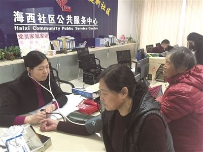 圖為前日,海西社區(qū)居民在社區(qū)新設(shè)的健康角量血壓。據(jù)了解,為方便社區(qū)老年居民隨時(shí)量血壓,海西社區(qū)新設(shè)了健康角,社區(qū)書記孫紅靜曾做過鄉(xiāng)村醫(yī)生,平時(shí)義務(wù)幫居民量血壓。陳沈華 姜夏鑫攝