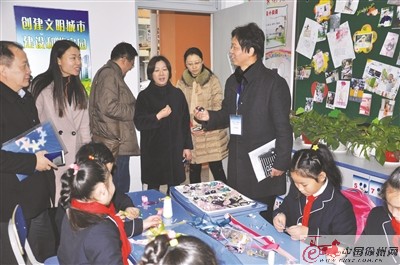 考核組專家仔細(xì)地查閱了創(chuàng)建臺(tái)賬資料,實(shí)地考察了校園環(huán)境、教室內(nèi)課桌椅的布局?jǐn)[放,參觀了博愛(ài)教育中心、心理咨詢室等;對(duì)學(xué)生開(kāi)展“健康知識(shí)知曉率及體能”的測(cè)試,觀看了學(xué)校震撼人心的“游泳特色操”以及書法、剪紙、制作頭飾社團(tuán)活動(dòng)。觀看了專題片——《健康促進(jìn)和諧發(fā)展》。健教活動(dòng)的豐富,健教隊(duì)伍的精良,健教文化的精深給各位領(lǐng)導(dǎo)留下了深刻印象。