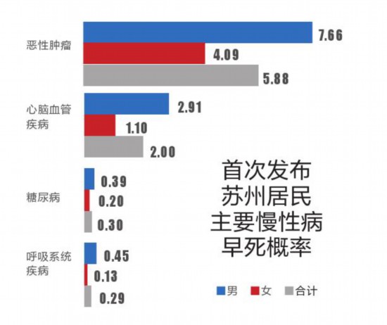 慢性非傳染性疾病是導(dǎo)致我市居民死亡的主要原因。昨天市疾控中心首次發(fā)布蘇州居民主要慢性病早死概率。