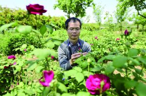 從道地藥材的藥圃走上小路,迎面就是一片斑斕的花圃,一朵開得正艷的紫紅色花朵十分惹眼,面對記者的好奇,鄒立思解釋道:“這是玫瑰,但卻不是男朋友送的‘玫瑰’。其實花店里賣的‘玫瑰花’都是月季花,真正植物學(xué)上的玫瑰一年只開一次,而月季可常年開花,還比玫瑰更好看。”為了讓傻傻分不清楚的大家能夠區(qū)分兩者,鄒立思特意蹲在玫瑰旁的藥用月季邊,輕拉著兩種花的葉子細(xì)細(xì)說道:“其實這兩種植物還是很好區(qū)分的,玫瑰枝干上的刺密密麻麻,葉子表面也是皺皺巴巴的;月季雖然也有刺,但是比玫瑰少得多,而且葉子十分光滑。”