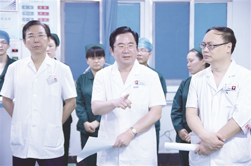 院長杜鐘祥(中)、副院長甄宗禮(左)、趙亮(右)到一線調(diào)研專科發(fā)展