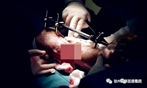 患者在外院術(shù)后小腿前面骨創(chuàng)傷長期不愈合,骨頭外露。蔡瑞哲博士聯(lián)合慢創(chuàng)科劉衍松主任,清創(chuàng)后將PRP注入術(shù)區(qū)。PRP中富含的多種生長因子,通過激活后,生長因子相互協(xié)作,能明顯縮短創(chuàng)面愈合時(shí)間,提高骨愈合質(zhì)量。為慢性難愈性創(chuàng)傷患者帶來新的希望。