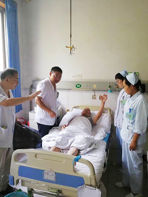 術(shù)后一小時(shí),奇跡發(fā)生了,患者左下肢可輕微平移,溶栓治療初顯成效;術(shù)后12小時(shí),患者神志清醒,精神狀態(tài)良好,左下肢可完全抬起,并可以輕微發(fā)聲,溶栓治療效果愈加明顯;術(shù)后24小時(shí)候后,患者左側(cè)肢體恢復(fù)如前,未遺留任何肢體偏癱,治療效果顯著。