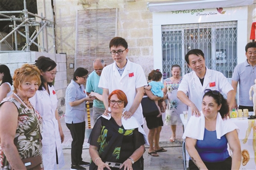 在8月3日的卡坎拉慈善活動(dòng)中,史江峰隊(duì)長熱情地給每一位參與者進(jìn)行中醫(yī)健康咨詢。初時(shí)少有人參加體驗(yàn),隨著坎卡拉市長加入到中醫(yī)推拿體驗(yàn),很多馬耳他當(dāng)?shù)鼐用窦尤氲襟w驗(yàn)中來,體驗(yàn)后皆對中醫(yī)推拿、耳穴等神奇療效贊不絕口。
