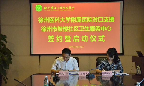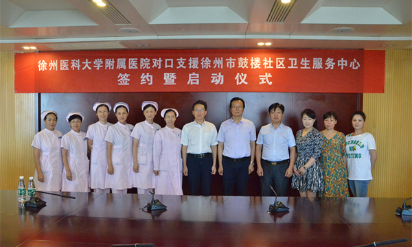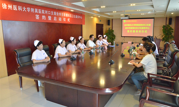 為深入貫徹落實黨的十九大精神,按照徐州市衛(wèi)計委落實二級以上公立醫(yī)院對口支援基層醫(yī)療衛(wèi)生機構(gòu)護理工作的要求,9月7日下午,“徐州醫(yī)科大學(xué)附屬醫(yī)院對口支援徐州市鼓樓社區(qū)衛(wèi)生服務(wù)中心簽約暨啟動儀式”在徐醫(yī)附院新大樓21樓第三會議室舉行。徐醫(yī)附院副院長金培生、護理部主任劉玉平、副主任張梅、王晶、支援專家鄭軒及各大科護士長,徐州市鼓樓康復(fù)醫(yī)院院長董瑞國、副院長趙艷春,徐州市鼓樓社區(qū)衛(wèi)生服務(wù)中心副主任兼護理部主任時孝麗及部分科室負(fù)責(zé)人參加了此次儀式。簽約儀式由徐醫(yī)附院護理部劉玉平主任主持。