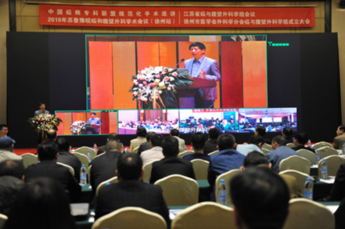 1019-20日,由中國醫(yī)師協(xié)會疝和腹壁外科培訓基地、國際內(nèi)鏡疝學會中國分會、亞太疝協(xié)會培訓中心、中華疝和腹壁外科雜志,以及河南省、山東省、江蘇省、安徽省疝學組等共同主辦,徐州市中醫(yī)院等國內(nèi)4家醫(yī)院聯(lián)合承辦的“中國疝病專科聯(lián)盟規(guī)范化手術(shù)巡講暨蘇魯豫皖疝和腹壁外科論壇”在我市隆重召開。徐州市醫(yī)學會外科學分會疝與腹壁外科學組成立大會同期舉行,市中醫(yī)院普外科主任權(quán)紅光當選該學組首任主委。本次論壇在江蘇、河南、山東、安徽設(shè)置4個分會場同步直播,來自蘇魯豫皖相關(guān)專業(yè)的300余位醫(yī)務人員到徐州會場參會學習交流。