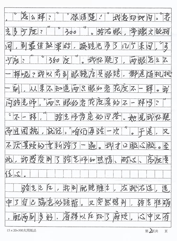 據(jù)悉,張老先生平日經(jīng)?磿(shū)寫(xiě)字,原先使用的老花鏡由于日久磨損已不適合佩戴。來(lái)到富國(guó)街驗(yàn)光配鏡中心驗(yàn)光、選鏡,經(jīng)過(guò)驗(yàn)光師袁月的細(xì)心選配,終于配到了一副合適的老花鏡。