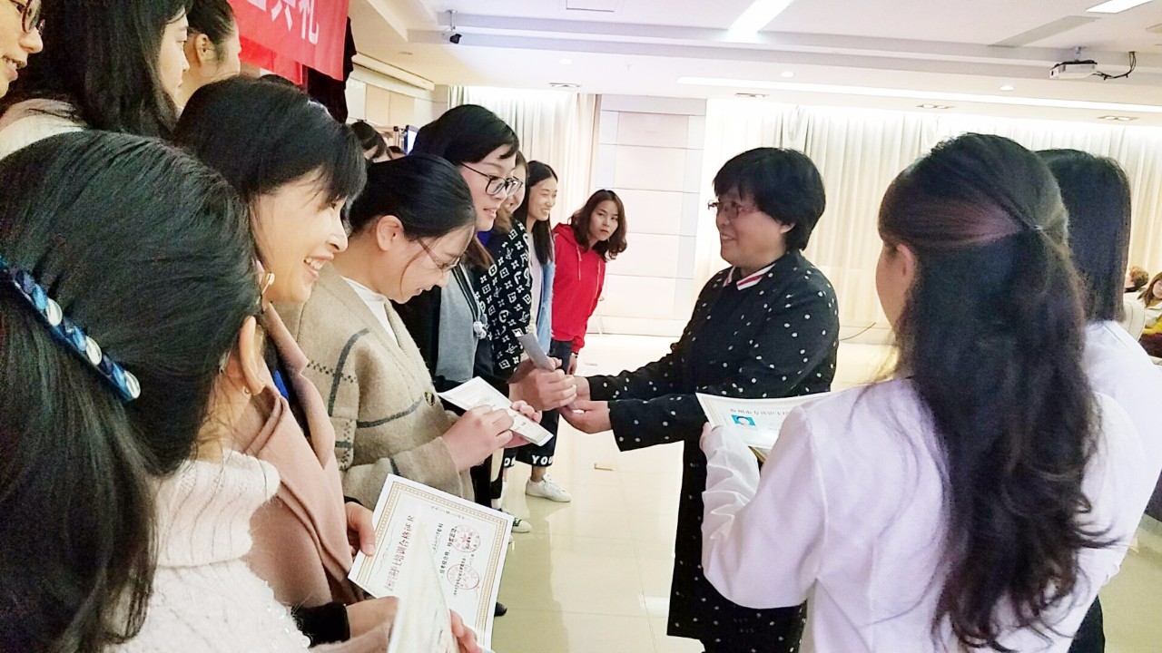 徐州市護(hù)理學(xué)會(huì)夏靜理事長(zhǎng)為學(xué)員頒發(fā)合格證書