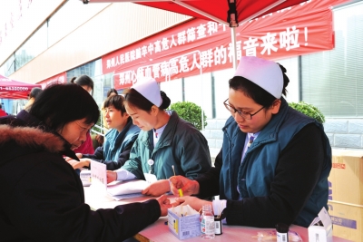 鄭州人民醫(yī)院在為周邊社區(qū)居民義診,宣傳腦卒中免費(fèi)篩查活動(dòng)
