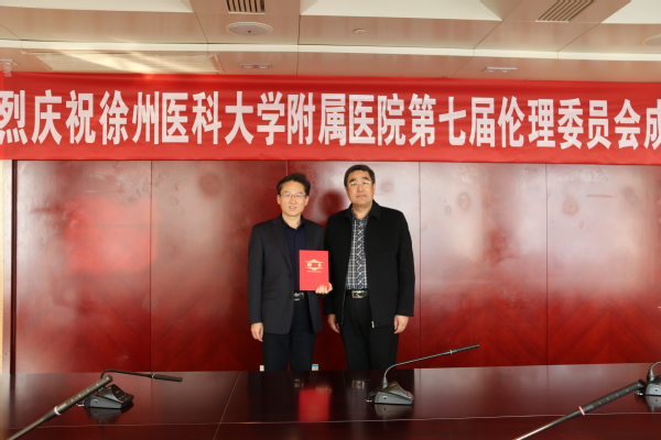 會(huì)議最后,徐州醫(yī)科大學(xué)副校長(zhǎng)、徐醫(yī)附院黨委書(shū)記、代理院長(zhǎng)王人顥教授為許鐵主任委員及金培生副主任委員頒發(fā)聘書(shū),并希望新一屆倫理委員會(huì)圍繞“1234”發(fā)展戰(zhàn)略,助力我院新時(shí)期的高質(zhì)量轉(zhuǎn)型發(fā)展。