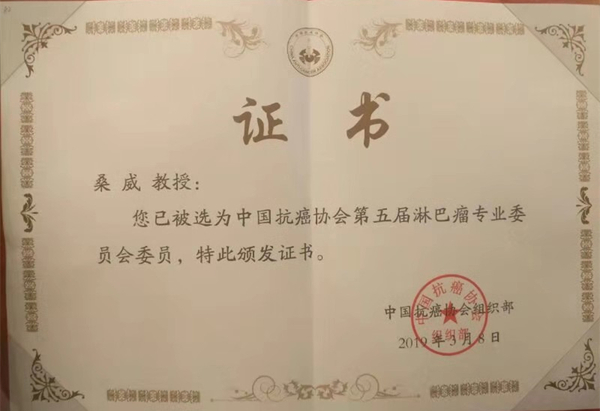 徐醫(yī)附院桑威博士當(dāng)選中國(guó)抗癌協(xié)會(huì)淋巴瘤專業(yè)委員會(huì)委員