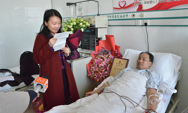 312日,造血干細(xì)胞捐獻(xiàn)志愿者熊建飛配型成功,在我院進(jìn)行造血干細(xì)胞捐獻(xiàn)采集,這是我市第78名成功捐獻(xiàn)造血干細(xì)胞的志愿者,我院幾乎承擔(dān)了全部的干細(xì)胞捐獻(xiàn)采集工作。