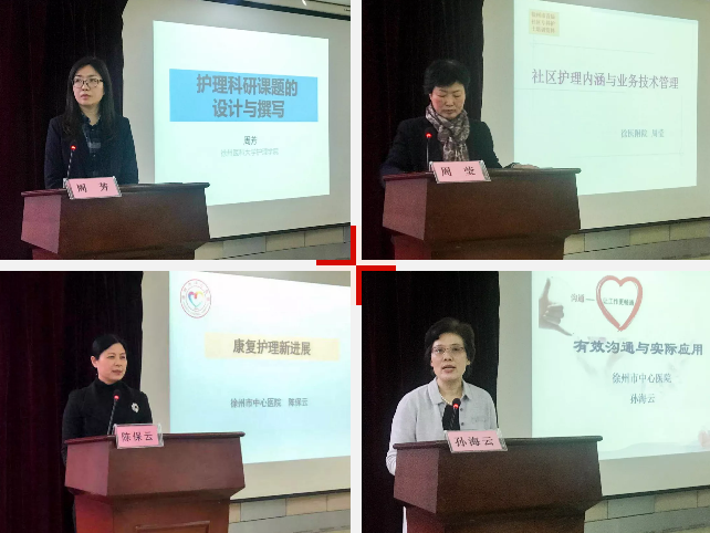 本次學(xué)習(xí)班邀請到了江蘇省護理學(xué)會霍孝蓉、徐州市衛(wèi)健委高行群、我院護理部王建玉、陳令紅、徐醫(yī)附院周芳、周瑩、市中心醫(yī)院陳保云、孫海云等護理界專家,向現(xiàn)場300余位聽眾進行了專科護士的發(fā)展與培養(yǎng)、家庭醫(yī)生簽約相關(guān)知識講解、基于Dension模型的護理團隊文化建設(shè)的實踐思考、護理敏感指標(biāo)檢測、護理科研論文寫作技巧、社區(qū)護理內(nèi)涵及護理業(yè)務(wù)技術(shù)管理、康復(fù)護理新進展、基層醫(yī)院護患溝通與實際應(yīng)用等多個主題的精彩講座。