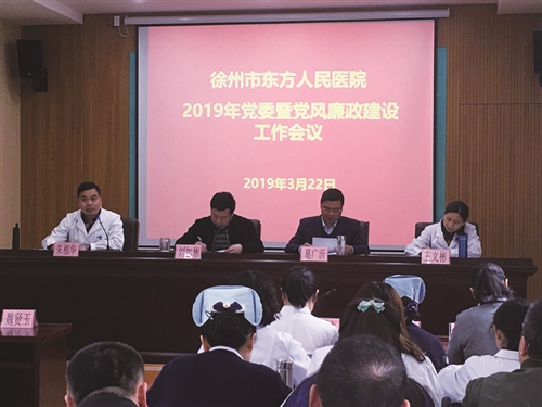 徐州日?qǐng)?bào)訊(全媒體記者 孟祥 通訊員 姚云)3月22日,市東方人民醫(yī)院召開黨委暨黨風(fēng)廉政建設(shè)工作會(huì)議,會(huì)議傳達(dá)貫徹市衛(wèi)健系統(tǒng)黨風(fēng)廉政建設(shè)工作會(huì)議精神,總結(jié)醫(yī)院2018年黨委和黨風(fēng)廉政建設(shè)工作,安排部署2019年工作任務(wù)。院領(lǐng)導(dǎo)班子成員出席會(huì)議,全院各支部書記、中層干部和黨員均參加了會(huì)議。