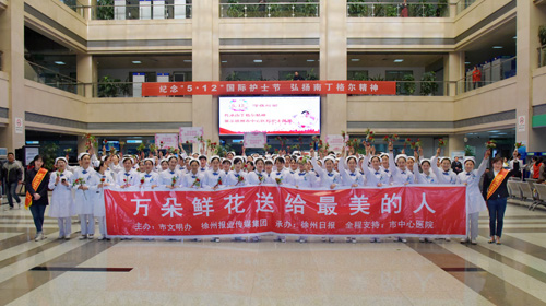 在“5·12國際護(hù)士節(jié)”到來之際,“萬朵鮮花送給最美的人”大型公益行動第三站——“萬朵鮮花送天使”正式啟動。這一次,徐州日報志愿者將芬芳的鮮花獻(xiàn)給了有“白衣天使”之稱的護(hù)士們,以此表達(dá)市民們對全市護(hù)理工作者崇高的敬意和美好的祝福。