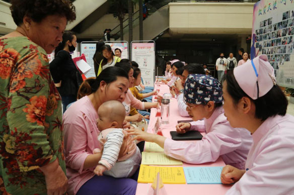 為慶祝國際助產(chǎn)士節(jié),市婦幼保健院還為患者們在門診大廳舉辦了義診活動,各病區(qū)主任、護(hù)士長親自坐診,為患者疑難解惑。產(chǎn)科七病區(qū)吳慶榮主任的咨詢臺前排起了長隊(duì),大家紛紛就生產(chǎn)問題進(jìn)行了咨詢,吳主任耐心、細(xì)心的給孕媽媽們一一做了講解。另一邊助產(chǎn)士咨詢臺前也圍滿了好多準(zhǔn)媽媽和新生兒媽媽的家長,如何正確產(chǎn)檢,孕期飲食怎樣合理搭配,怎樣進(jìn)行孕期體重控制……我們的護(hù)士長及助產(chǎn)士老師們悉心指導(dǎo),讓每一位前來咨詢的準(zhǔn)媽媽們都得到了滿意的回復(fù)。