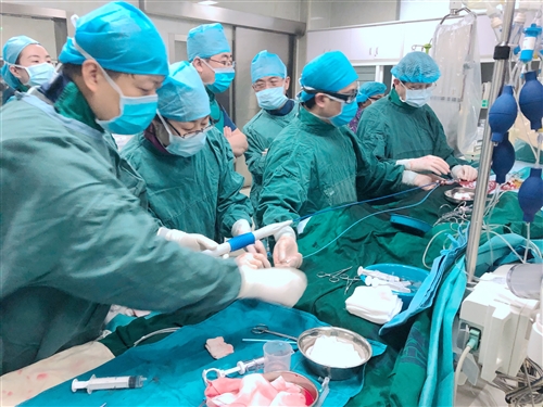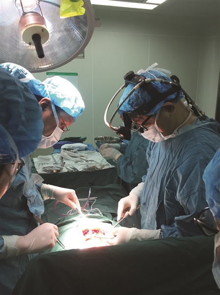 市中心醫(yī)院心臟外科肖鋒、楊陽團(tuán)隊(duì)在手術(shù)。