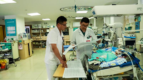 采訪剛結(jié)束,兩位醫(yī)生又匆忙進(jìn)入到心胸外科的重癥監(jiān)護(hù)室,開始了他們每天必做的查訪危重病兒工作。