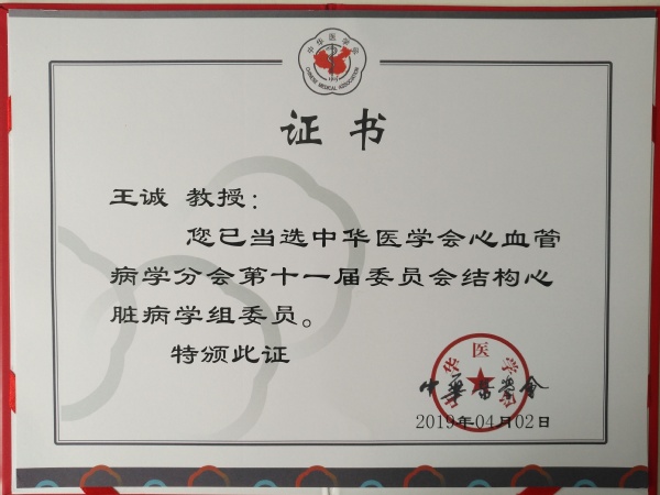 徐醫(yī)附院王誠(chéng)主任當(dāng)選中華醫(yī)學(xué)會(huì)心血管病學(xué)分會(huì)結(jié)構(gòu)性心臟病學(xué)組委員